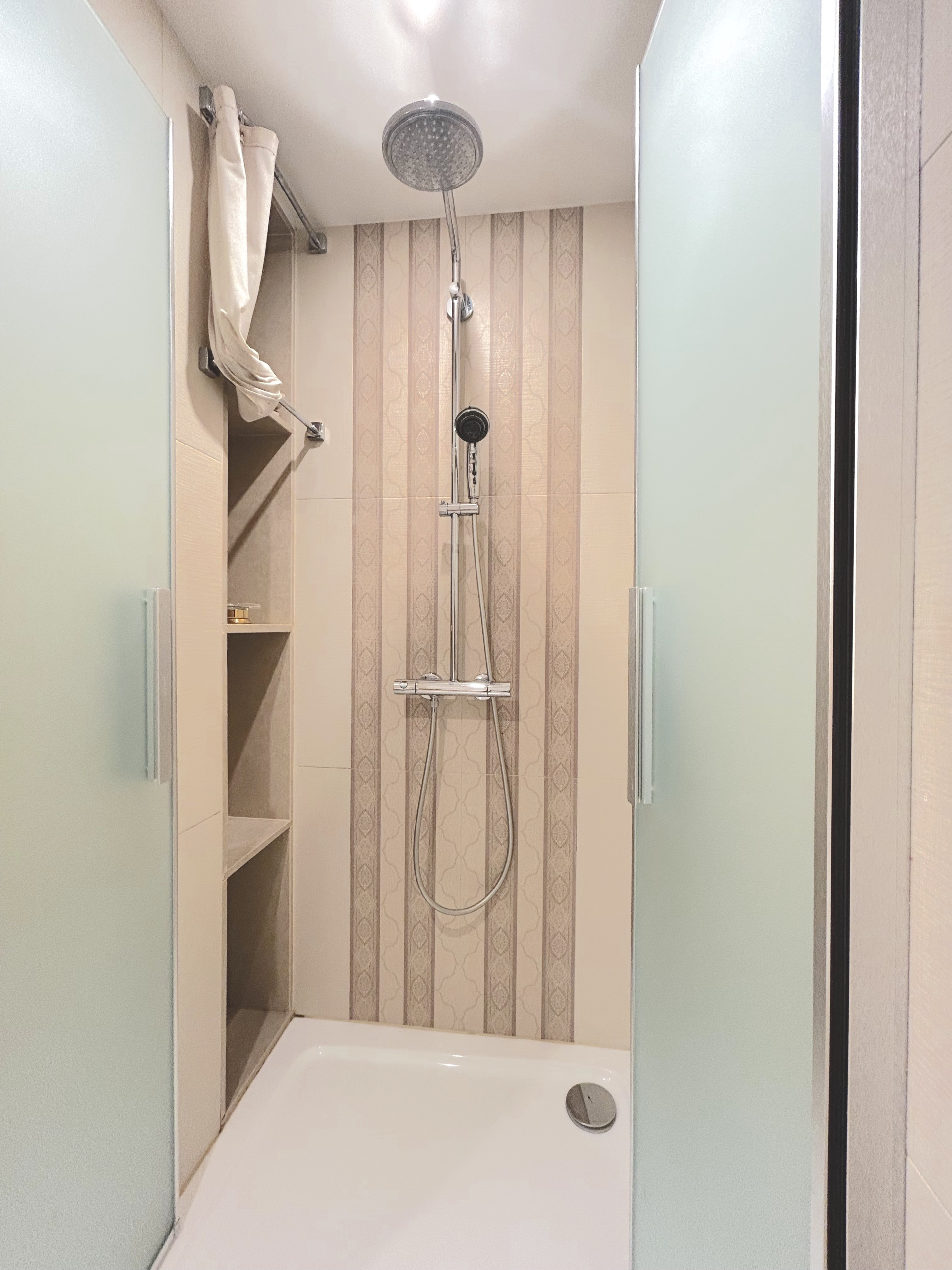 The apartment features 3 ensuite bedrooms, accommodating up to 6 guests comfortably. The bedrooms are equipped with a mix of queen-size and individual beds, ensuring a restful night's sleep for all. The 3 bathrooms, including 2 with showers and 1 with a bathtub, provide ample space and privacy for everyone.